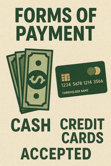 Forms of payment accepted are: